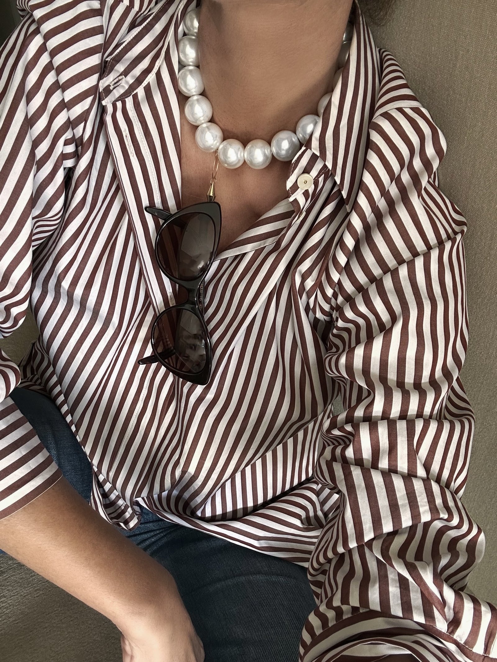Alluminio dorato, ottone dorato, perle in resina, silicone, calamita.