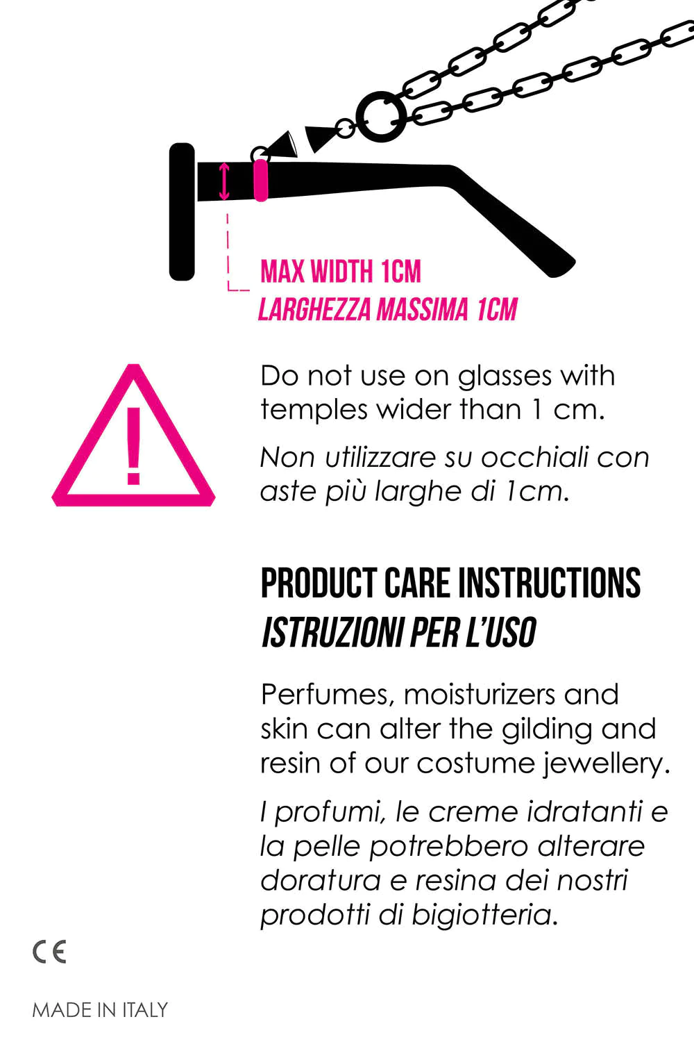 Non utilizzare su occhiali con aste più larghe di 1 cm.
